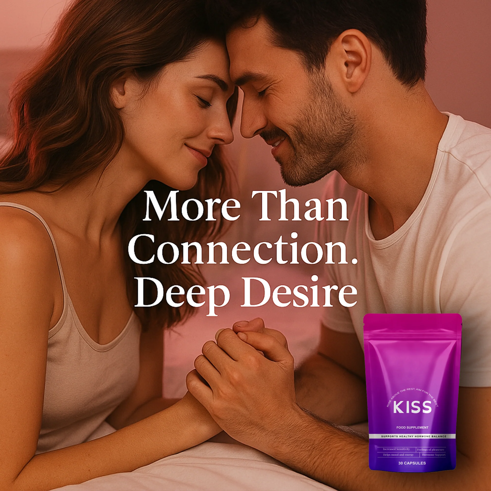 Kiss is our women’s formula containing ingredients designed to support mood, hormonal balance, and natural desire. Whether you’re managing daily stress, energy dips, or a fluctuating libido, Kiss is a gentle, research-inspired supplement to help you reconnect with your rhythm.