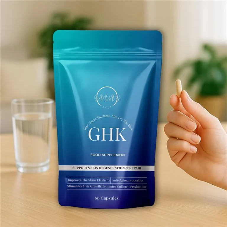 GHK 1500mcg (Copper Peptide) is known for its regenerative potential, particularly for skin, hair, and overall cellular function. These capsules offer internal support for beauty and repair, promoting a youthful glow and resilience from within.